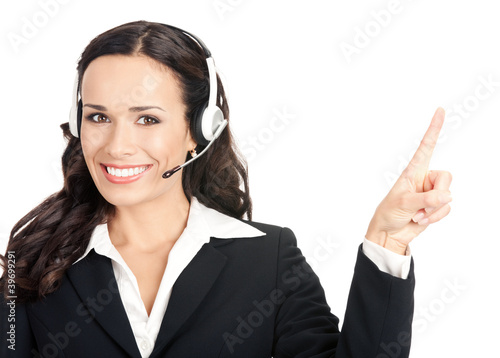 Support phone operator showing, isolated