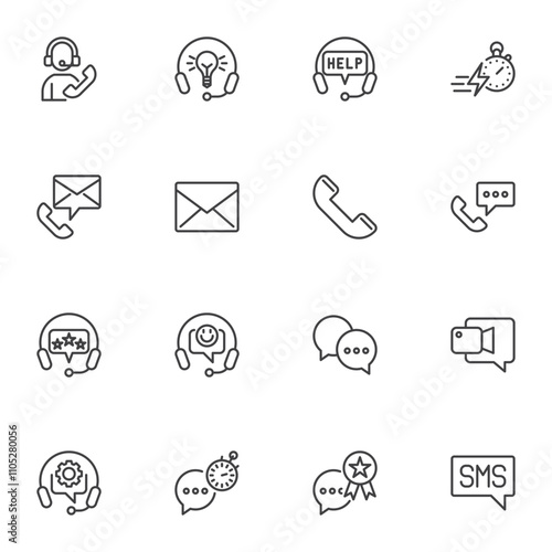Support Service line icons set