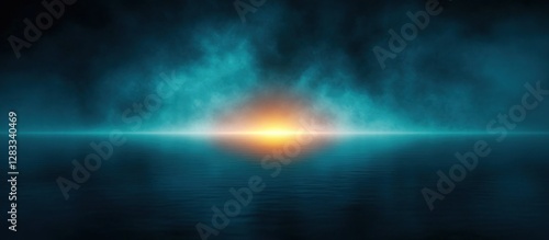 Surreal Mystical Landscape with Deep Blue Fog and Glowing Horizon