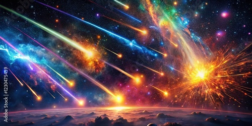 Surreal Night Sky: Meteor Shower Exploding Across Starry Galaxy