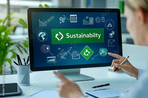 Sustainability concept on computer screen for environmental conservation