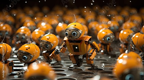 Swarm robotics cooperative behavior of multiple robots for complex tasks solid color background