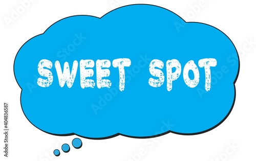 SWEET SPOT text written on a blue thought bubble.
