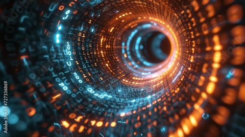 Swirling binary code forms a mesmerizing vortex, embodying the digital universe's infinite possibilities.