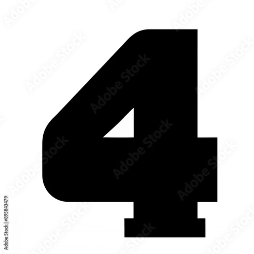 Symbolic black and white isolated vector illustration of number 4 on white background.