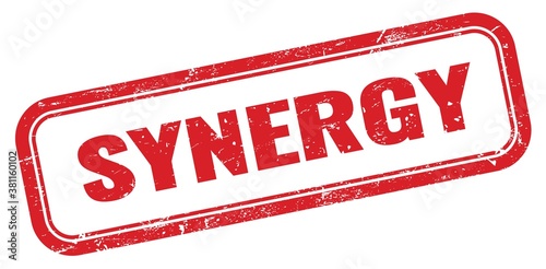 SYNERGY red grungy rectangle stamp.