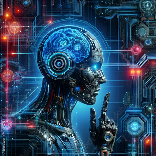 Synthetic Symbiosis Neon-Lit Pathways of the Futuristic Cyborg's Nervous System