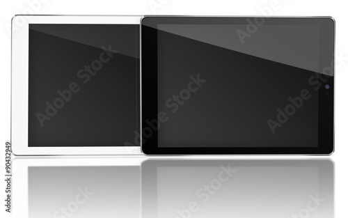 Tablet computers with black screen.