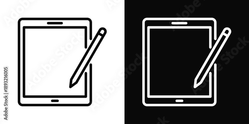 Tablet Icon White And Black Background Style