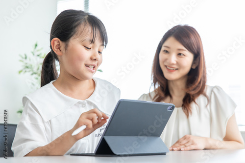 タブレット学習する女の子と講師 tablet learning