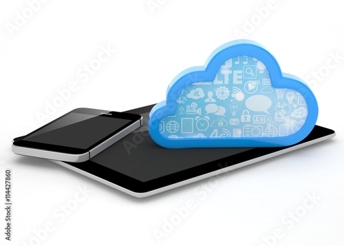 tablet pc, smart phone and cloud. 3d rendering.