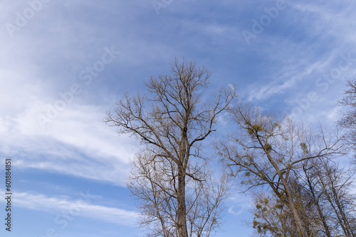 Tall deciduous trees in early spring without foliage