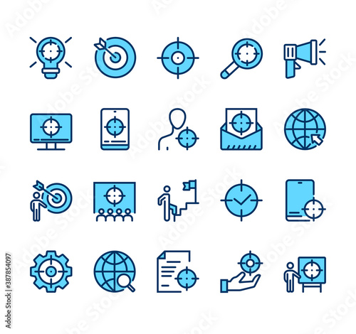 Target and goal simple isolated line icon set