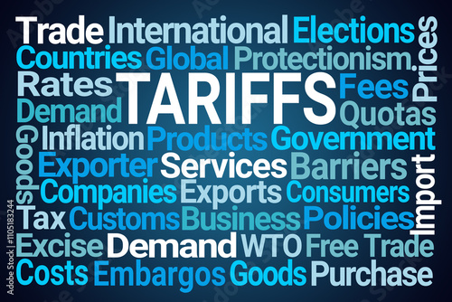 Tariffs Word Cloud on Blue Background