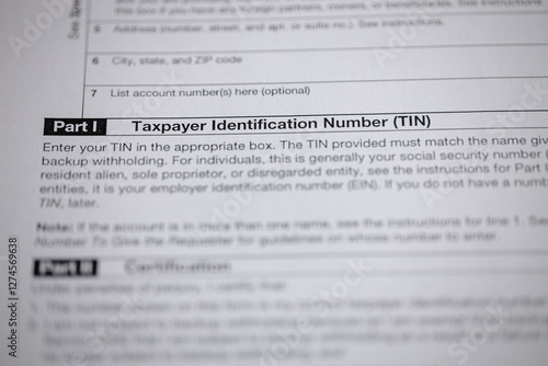 Taxpayer Identification Number form section, detail. Document focused on TIN submission, part of financial compliance.