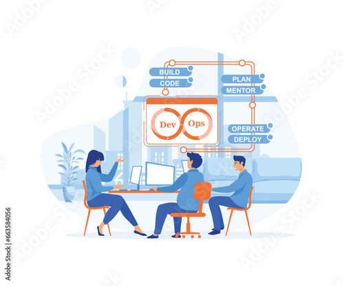 team of programmer concept with devops software development practices methodologyflat vector modern illustration