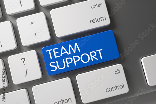 Team Support Concept: Modernized Keyboard with Team Support, Selected Focus on Blue Enter Button. 3D Illustration.