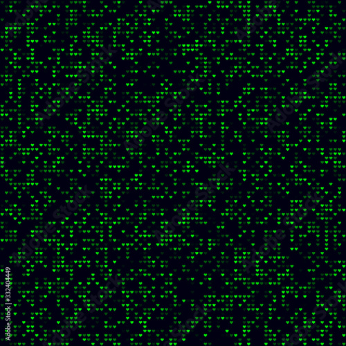Tech background. Sparse pattern of hearts. Green colored seamless background. Powerful vector illustration.