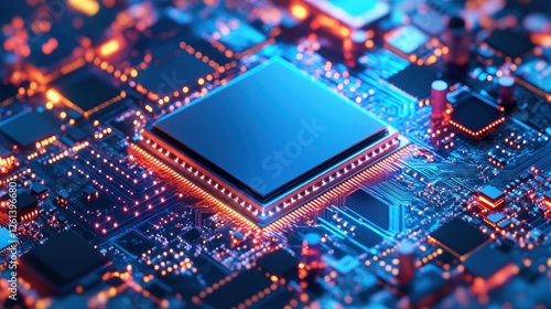 Tech CPU on Circuit Board Close-up