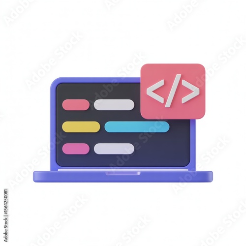 Tech Dashboard: laptop, coding, colorful bars, software, development, data, innovation, programming, UI, dashboard, charts, digital screen, analytics