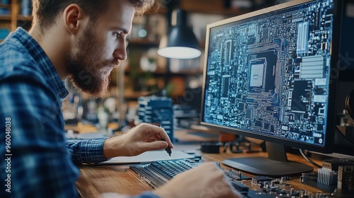 Tech Enthusiast Working on Computer: technology