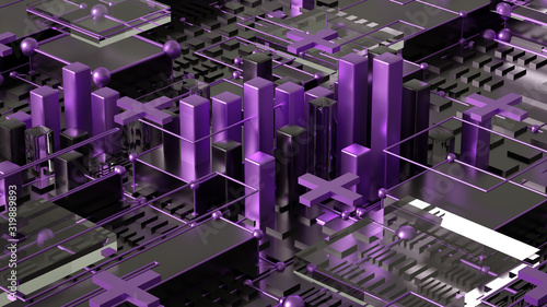Tech futuristic geometric background. 3d illustration, 3d rendering.