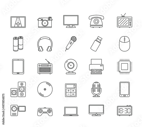 Tech gadgets collection outlined icon set