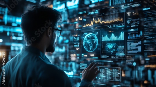 Tech Professional Analyzing Data on Interactive Digital Screen