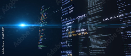 Technological background. Software source code. Program code. Programming code on virtual screen. Illustration.