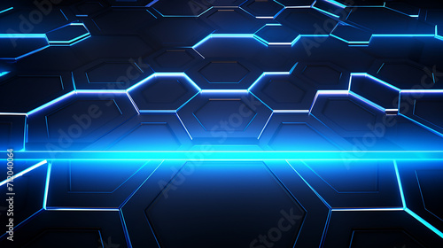 technological hexagonal background with blue neon illustration