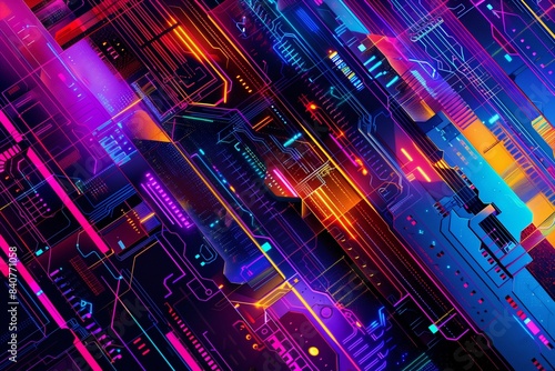 Technology Abstract Background - Vibrant Technological Circuitry - Abstract Vector Background