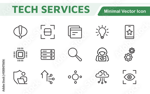 Technology and Development Icon Set. Modern and innovative icons tailored for tech apps and projects, perfect for showcasing development tools, software solutions, and cutting-edge technologies.