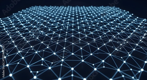 Technology background Abstract glowing blue network grid on dark background with interconnected nodes
