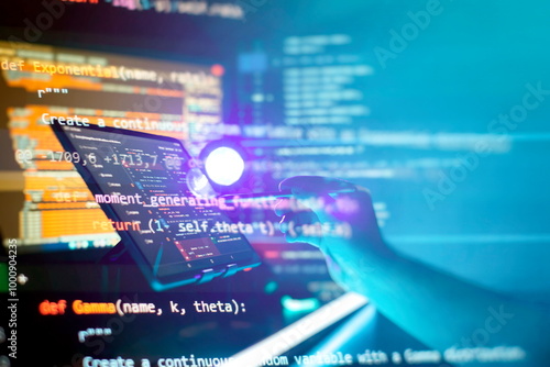 Technology background. Development, programming and coding technology concept. A programmer manually works with program code