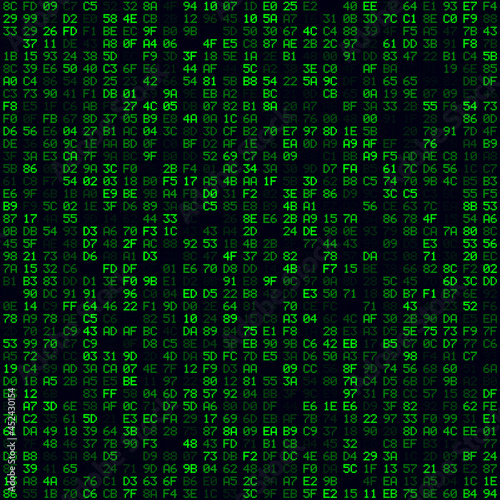 Technology background. Green filled hexadecimal pairs background. Medium sized seamless pattern. Elegant vector illustration.