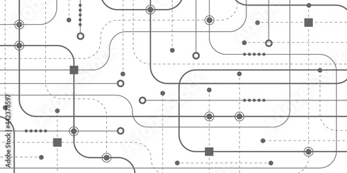 Technology background of lines.Geometric connect lines and dots.Electronic board with chip.Future technologies.Vector illustration.
