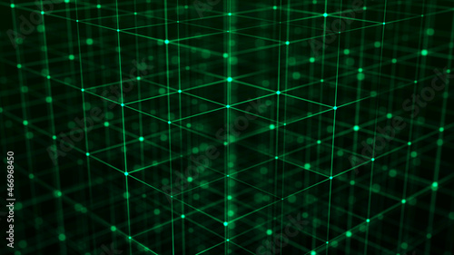 Technology blockchain concept. Dynamic movement of a digital data stream. Network connections structure. Big data visualization. 3D rendering.