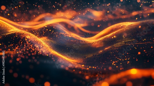 Technology digital wave background concept.Beautiful motion waving dots texture with glowing defocused particles. Cyber or technology background.