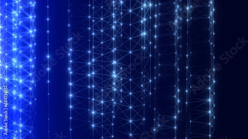 Technology network connection artificial intelligence. Abstract business design. Futuristic grid neural networks. Motion big data on space. Virtual cyber security background. 3D rendering.