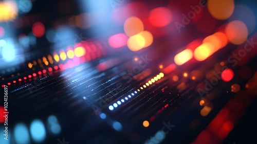 Technology screen with technology blurred abstract light background.