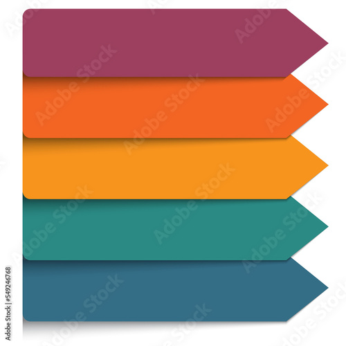 Template for infographics, colored horizontal arrows with shadow 5 positions