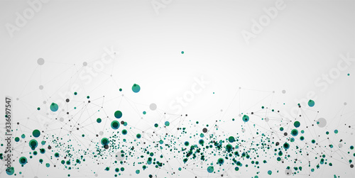 Template for science and technology presentation with connecting dots and lines. Plexus style background. Global network connection.