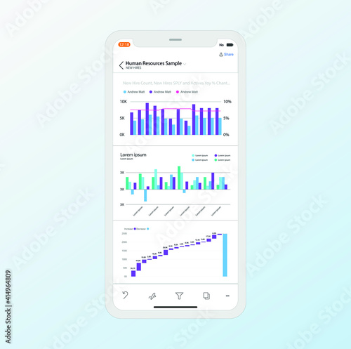 Template with graphs, tables and diagrams. Data visualization dashboard on mobile. EPS10