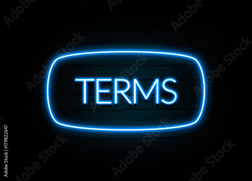 Terms - colorful Neon Sign on brickwall