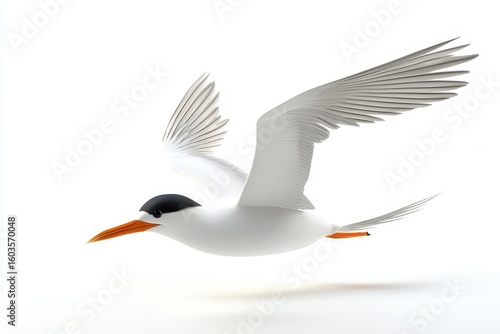 Tern diving vertically 3d render cartoon character on white background