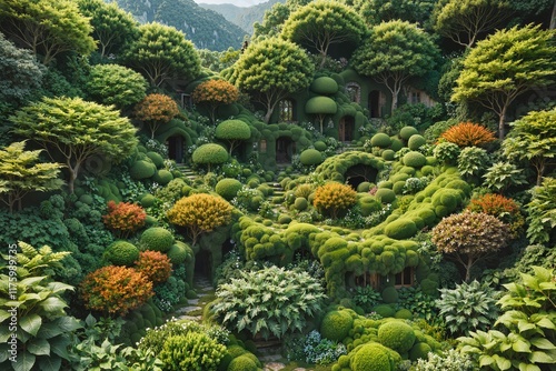 Terraced Garden with Greenery and Flowers