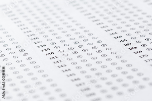 Test score sheet with answers