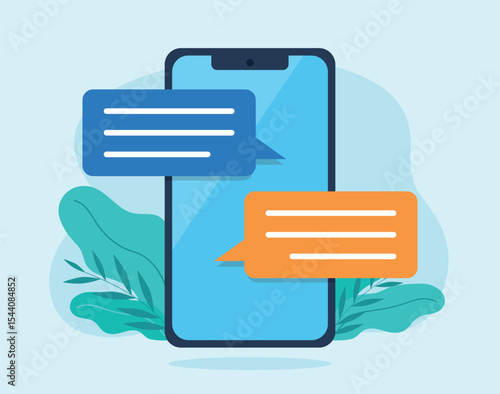 Text conversation on mobile phone screen. Two speech bubbles from text message conversation. Communication via text message. Vector graphics in flat design style.