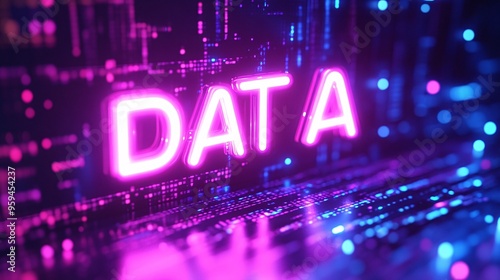 Text 'Data' on abstract floating data bars background, data science concept.