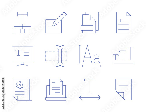 Text icons. Thin Line style, editable stroke. font, text editor, files, text, text size, white paper, cursor, file, instruction, writing